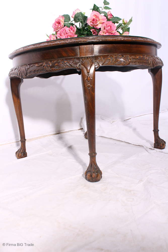 Runder antiker Jugendstil Besprechungstisch Herrenzimmer Rauchertisch Chippendale Couchtisch Krallenfüße