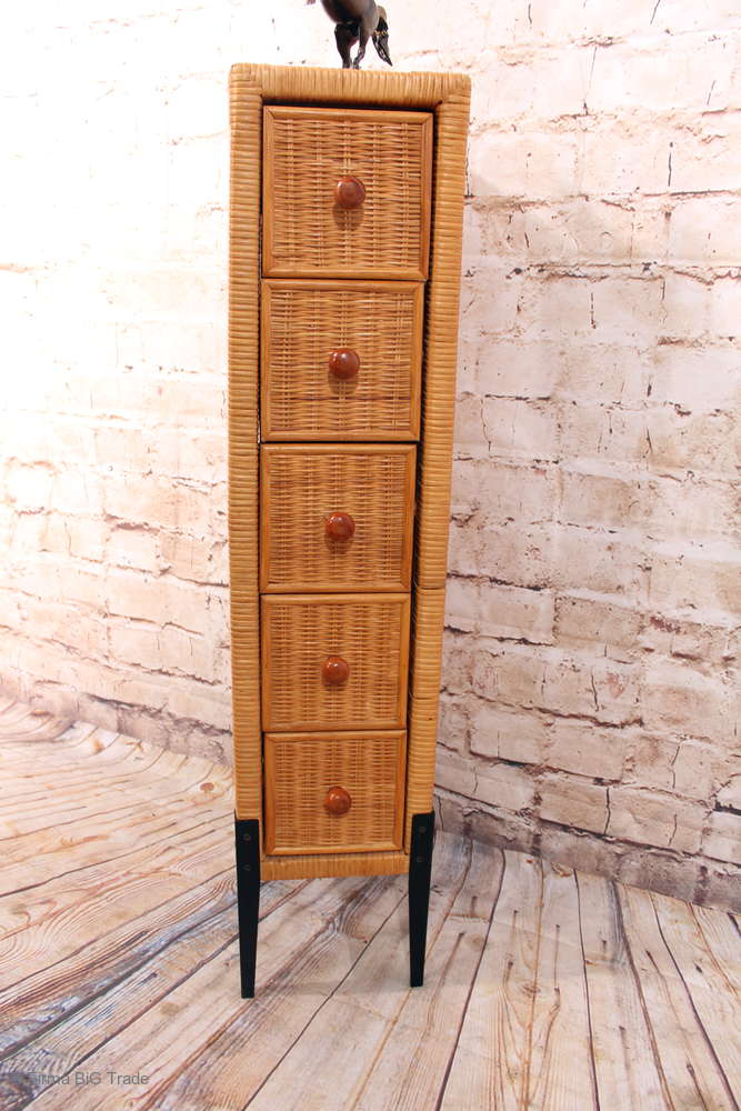Ausgefallener Rattan Schubladenschrank / Konsole / Flurtisch / Beistellschrank 5 Schubladen / Geflecht / 2 Vorhanden