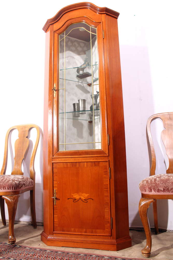 Elegante Eckvitrine / Glasvitrine Sammlervitrine Glaseinlageböden Eckschrank Eckregal Innenbeleuchtung