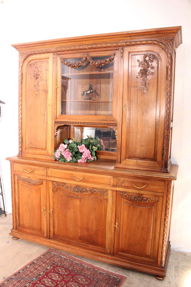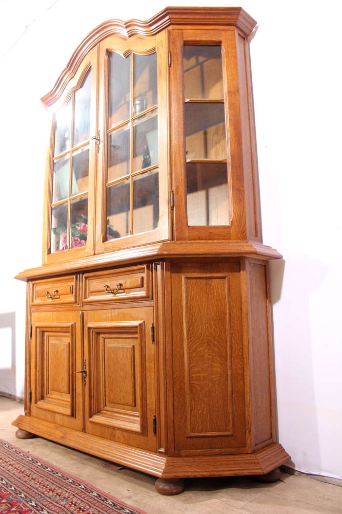 Prächtige antike Jugendstil Kredenz 2tlig. Wohnzimmerschrank Vitrinenschrank Schnitzereien / Viel Stauraum