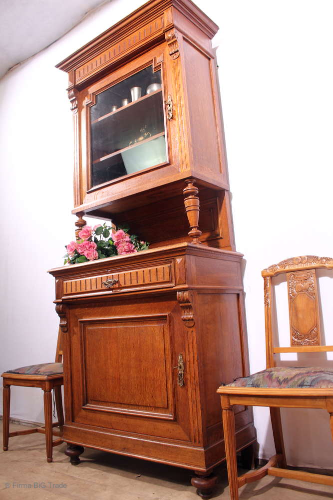 Prächtiger antiker Gründerzeit Halbschrank / Kommode / Kredenz / Schubladen / Küchenschrank / Schnitzereien