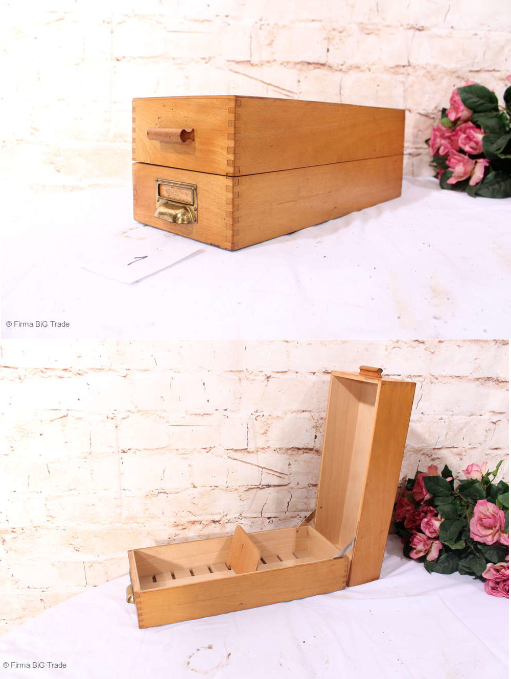 RETRO! Schöner alter Karteikasten Kartei Register Holzkarteikasten Metallgriff Schild / Nr. 2