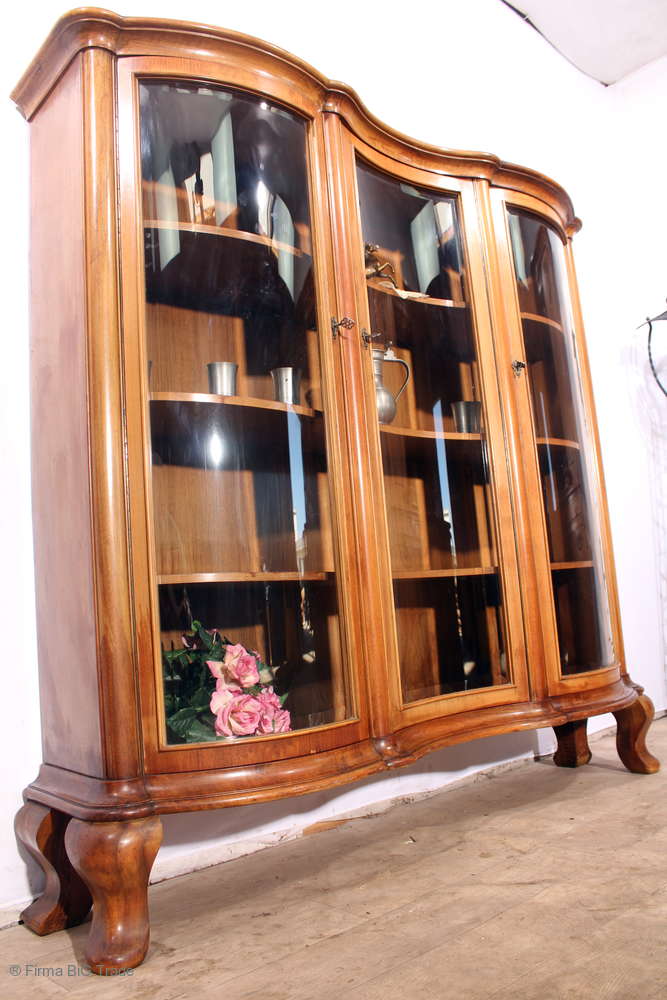 SELTEN! Wunderschöner antiker 3trg. Bücherschrank Wellenschrank Vitrine Rundglas Bogenglas
