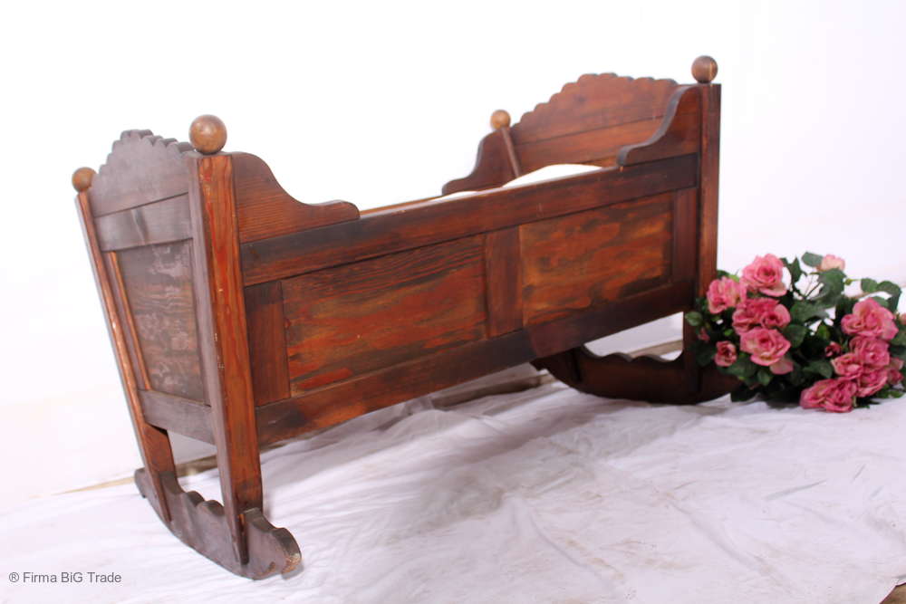 Große antike Kinderwiege Schaukelbett Kinderbett Baby Bett Baby Wiege Massiv Holz Bauernbett