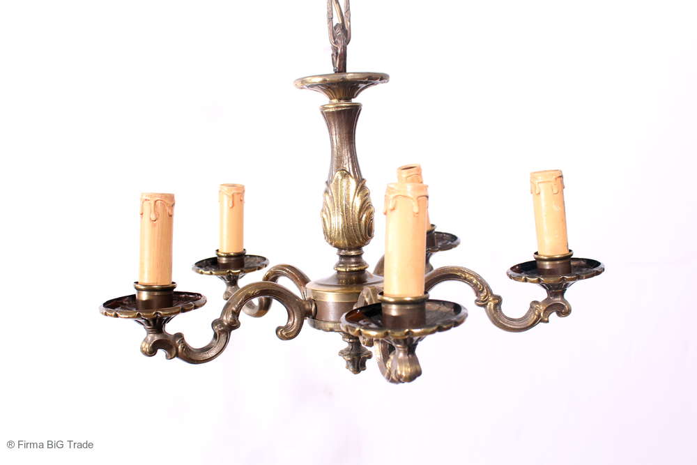 Wunderschöner alter Chippendale Messing Kronleuchter / Deckenlampe / Lampe / 5 Armen / Nr. 33