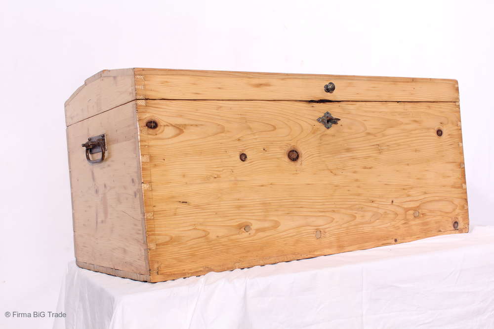Große Antike Biedermeier Runddeckeltruhe Wäschetruhe Holztruhe Hochzeitstruhe Weichholz massiv Nr. 23