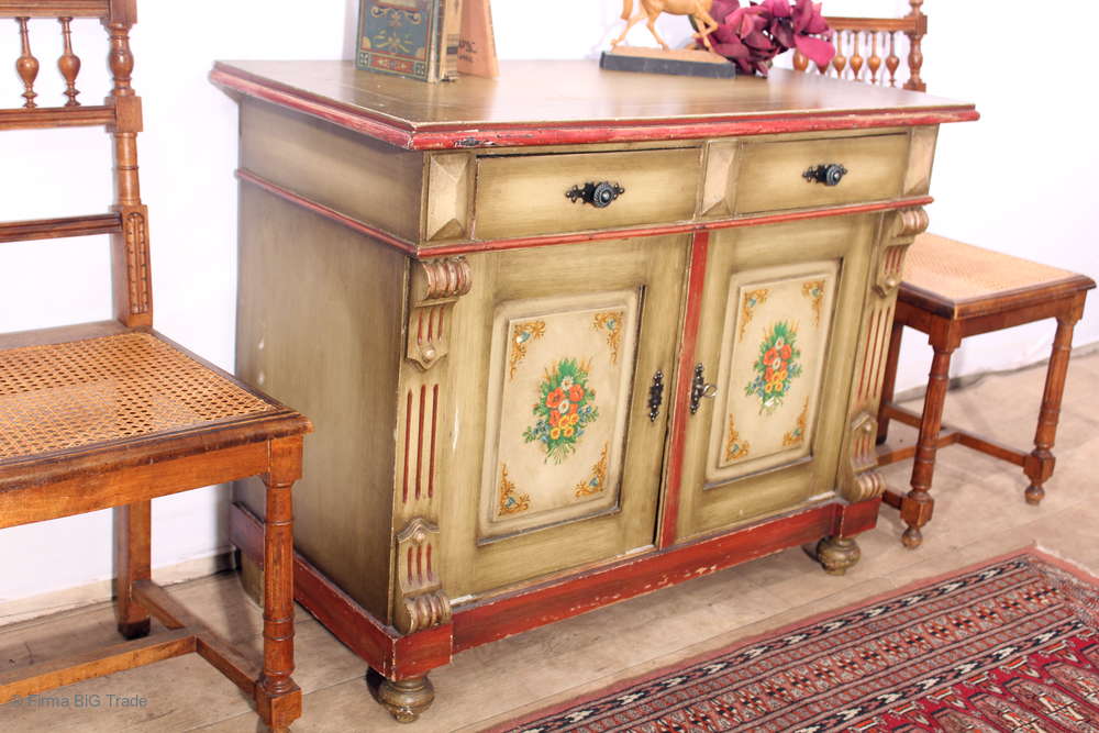 SELTEN! Antiker Gründerzeit Kinderschrank / Bauernschrank Kommode / Unterschrank Bauernmalereien