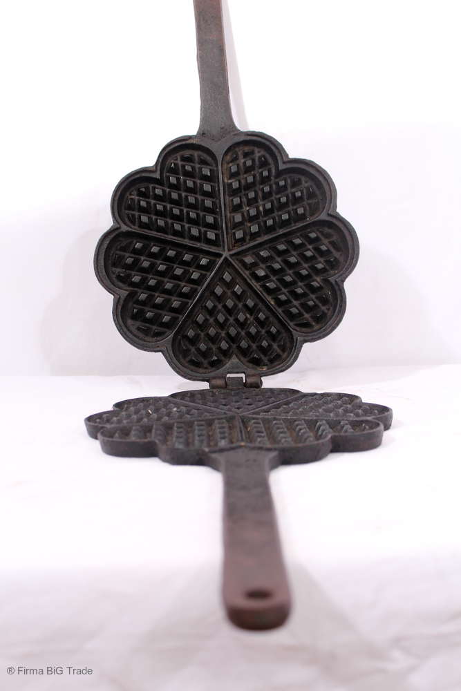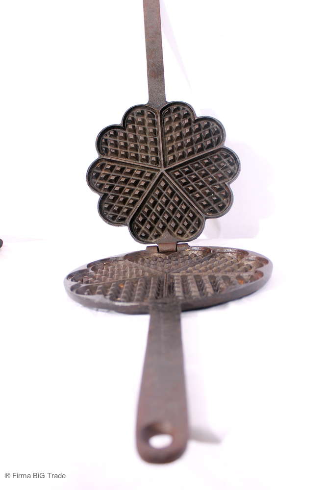 Antikes Waffeleisen Große Backflächen antike Bäckerei schöne Muster Griffe Eisenguss / Nr. 1