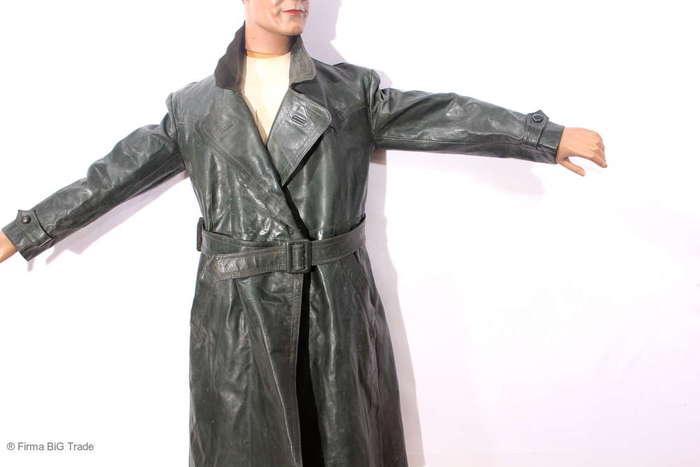 Schöner antiker Ledermantel / Motorrad Mantel / Militär Mantel / Armee Grün m. Grürtel und Taschen