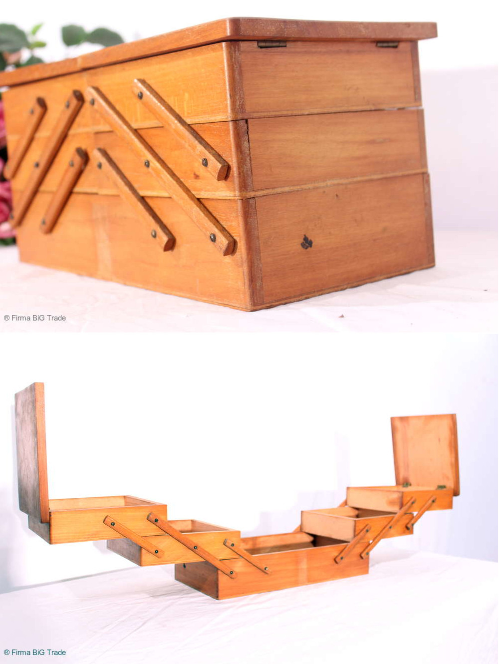 Zauberhafter alter 50er Jahre Nähkasten / Näh Kiste / Aufklappbar / Holzkiste / Werkzeugkasten Holzkasten