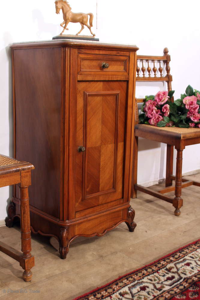 Schöner antiker Louis Philippe Nachttisch Nachtschrank Beistellschrank Marmorplatte Schublade / Nr. 218