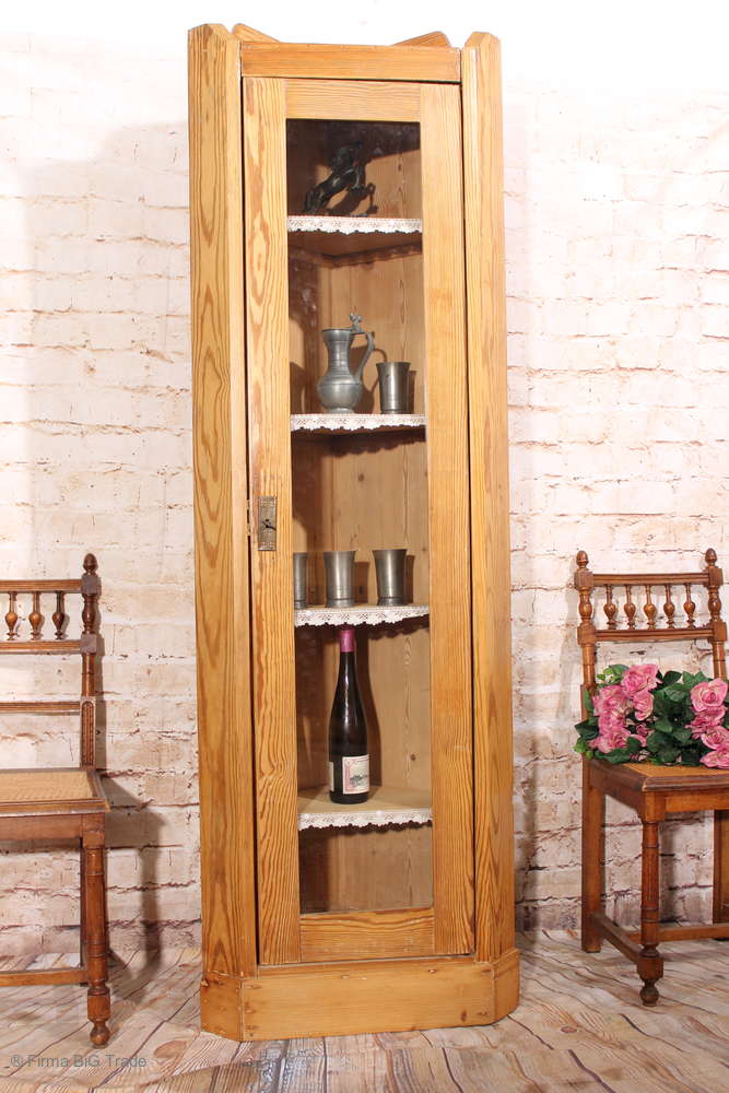 Ausgefallene antike Jugendstil Eckvitrine Sammlervitrine Landhaus Küchenschrank Eckschrank Weichholz massiv