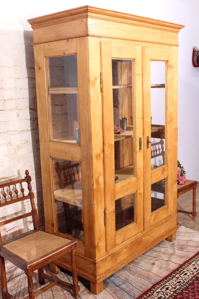 TOP! Antiker Jugendstil Schrank Vitrine Keilschrank Glastüren Bücherschrank Regalschrank Weichholz Zerlegbar