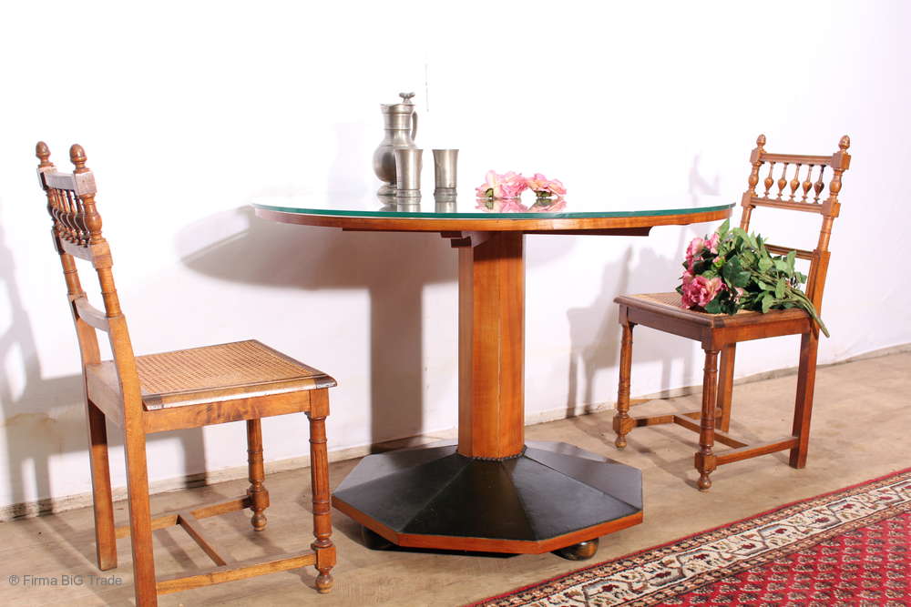 SELTEN! Antiker runder Jugendstil Salontisch Kneipentisch Kirschholz Glasplatte Esstisch Küchentisch