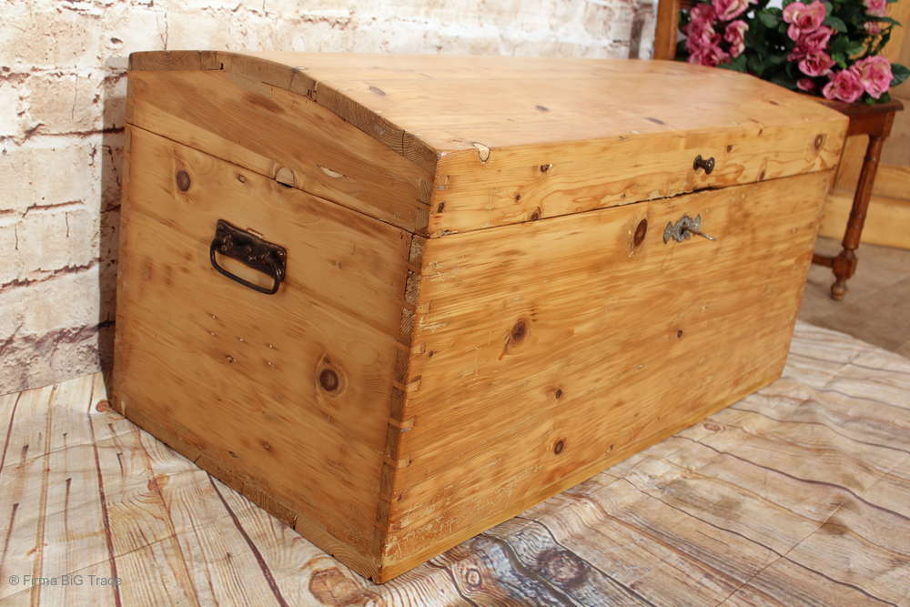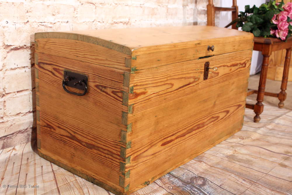 Große Antike Biedermeier Runddeckeltruhe Landhaus Truhe Holztruhe / Wäschetruhe Weichholz massiv / Nr. 29