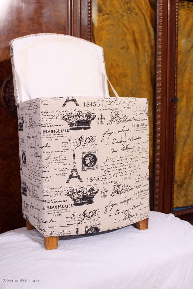 Schöne Trendige Wäschetruhe Klapptruhe Kindertruhe / Hocker Beschrifteter Stoffbezug Paris