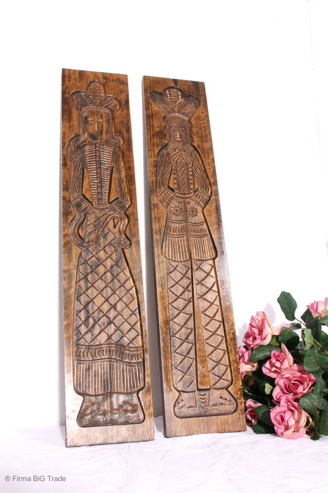 2 Schöne nostalgische Holzbilder Wandbilder Holzschnitzereien Mann und Frau / Wanddekoration