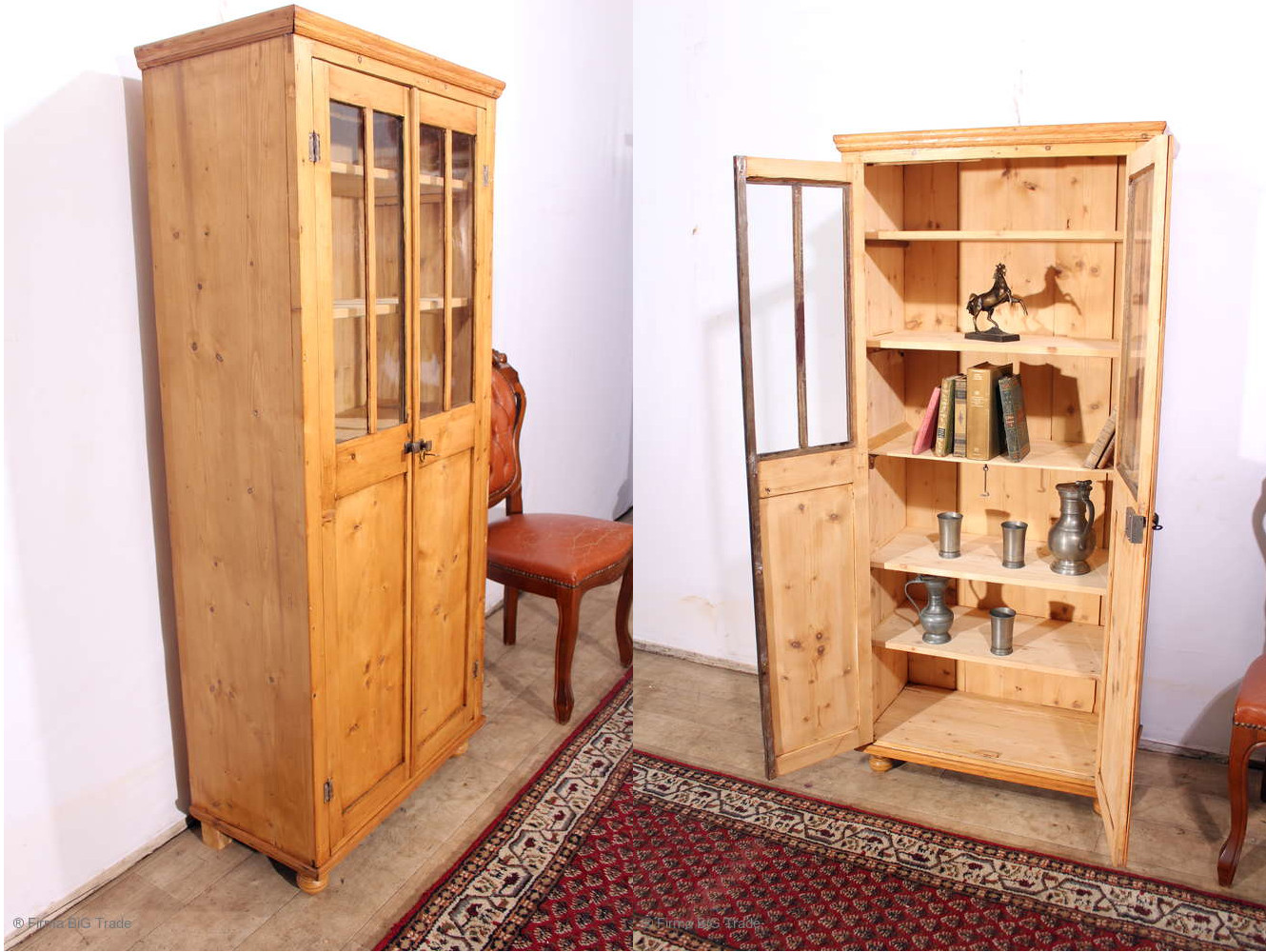 SELTEN! Antike Jugendstil schmale Sammlervitrine Bücherschrank Regalschrank 75 cm breit 5 Regalböden