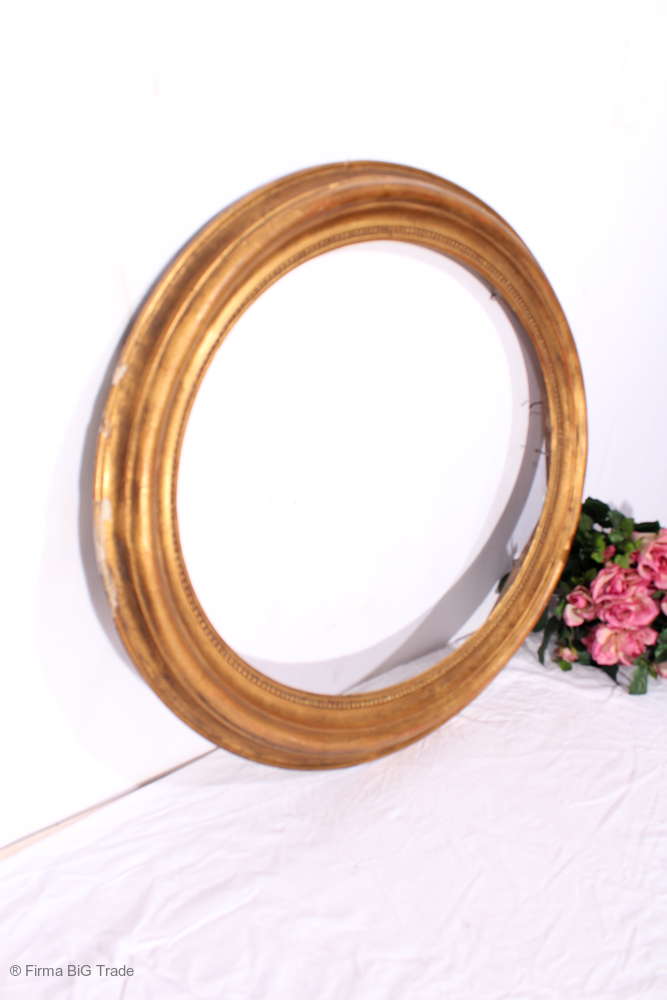Großer antiker Biedermeier Holzrahmen Ovaler Bildrahmen Gemälderahmen Spiegelrahmen Goldpatina