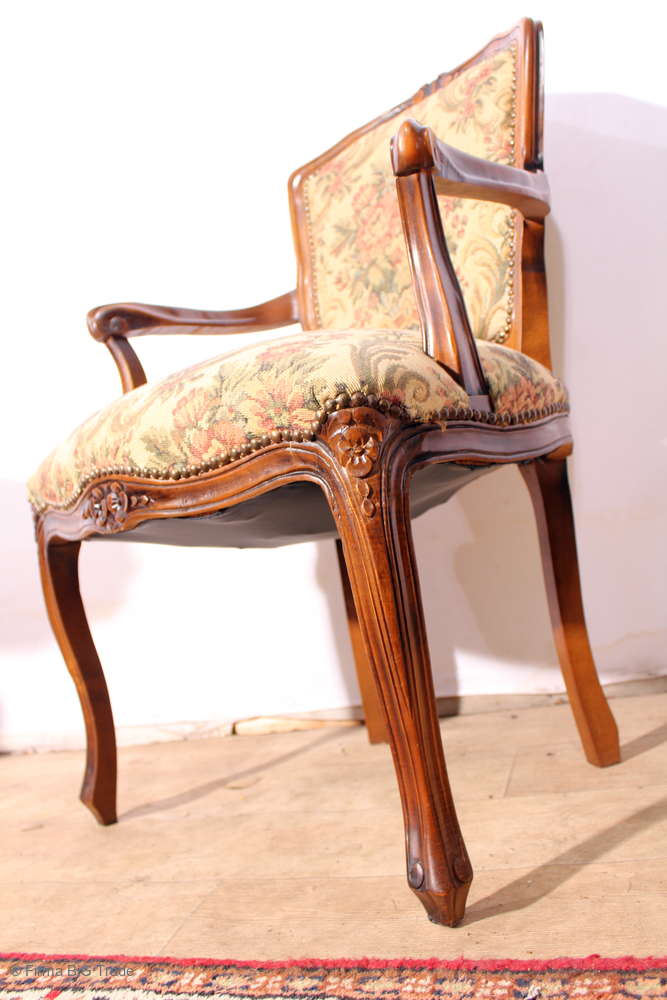 Wunderschöner Armlehnstuhl / Barock Stil / Chippendale / Goblin Stoff / Nussbaum / Schnitzereien