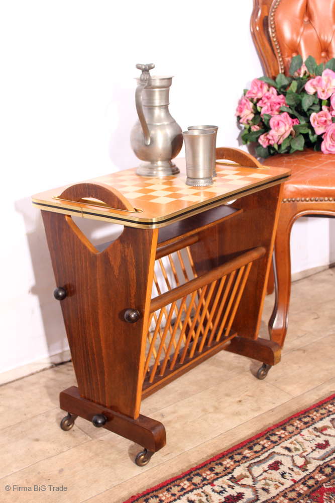 Retro! Ausgefallener 50er Zeitungsständer Beistelltisch Schachtisch Abnehmbare Platte Rollen