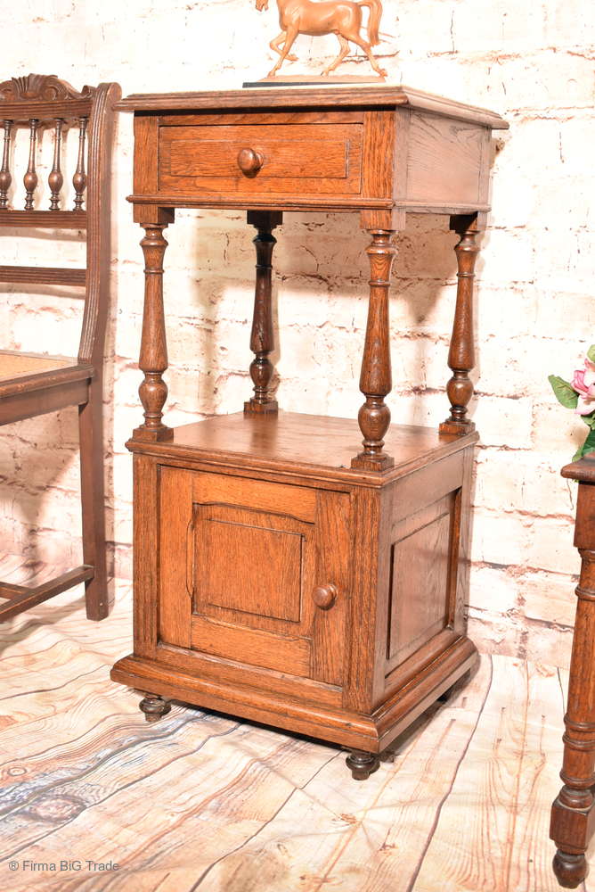Antiker Gründerzeit Nachttisch Nachtschrank Schnitzereien Flurschrank Telefonschrank Säulen / Nr. 228
