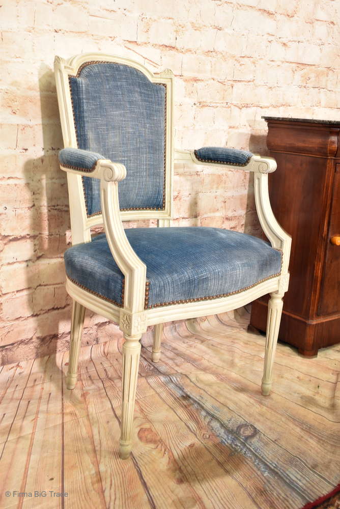 RETRO! Formschöner alter Louis-seize Stil Armlehnstuhl Schreibtischstuhl Polsterstuhl Alt Weiß 2 vorhanden / Nr. 1