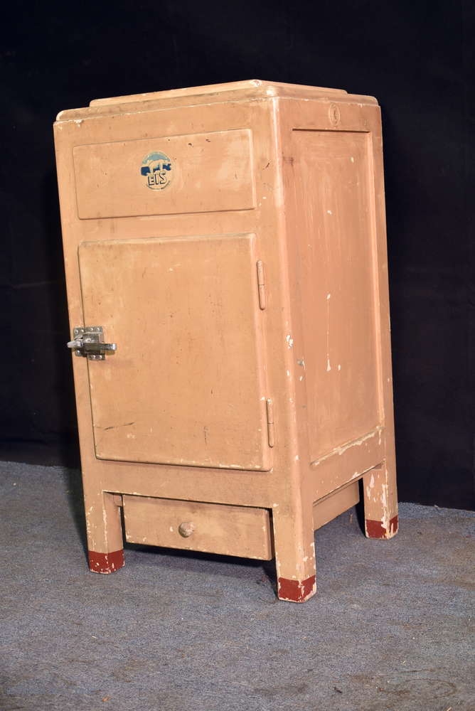 Musealer Kühlschrank Holzkühlschrank Beistellschrank mit Metalleinsätzen Klappdeckel Eisfach