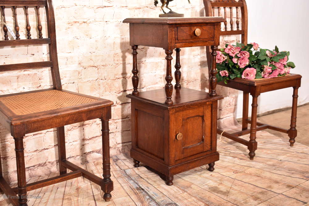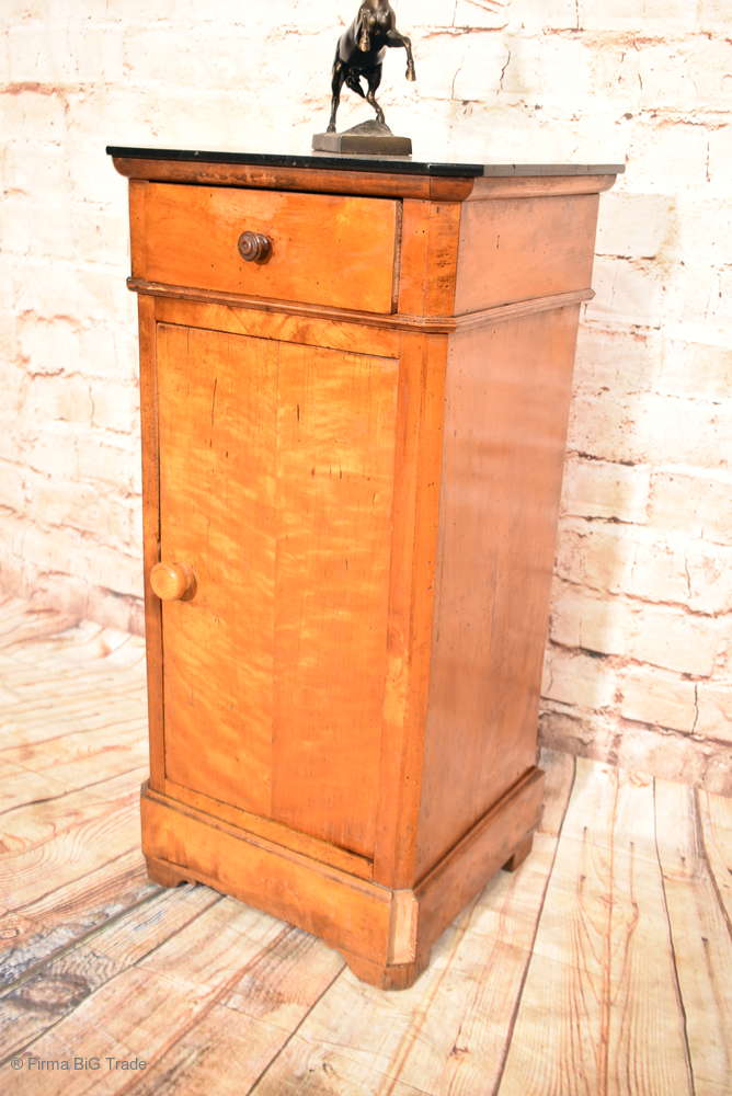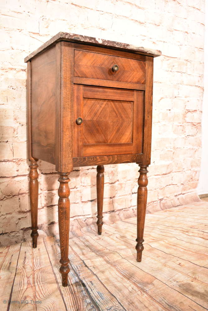 Schöner Antiker Jugendstil Nachttisch Nachtschrank Beistellschrank Säulen Marmorplatte / Nr.240