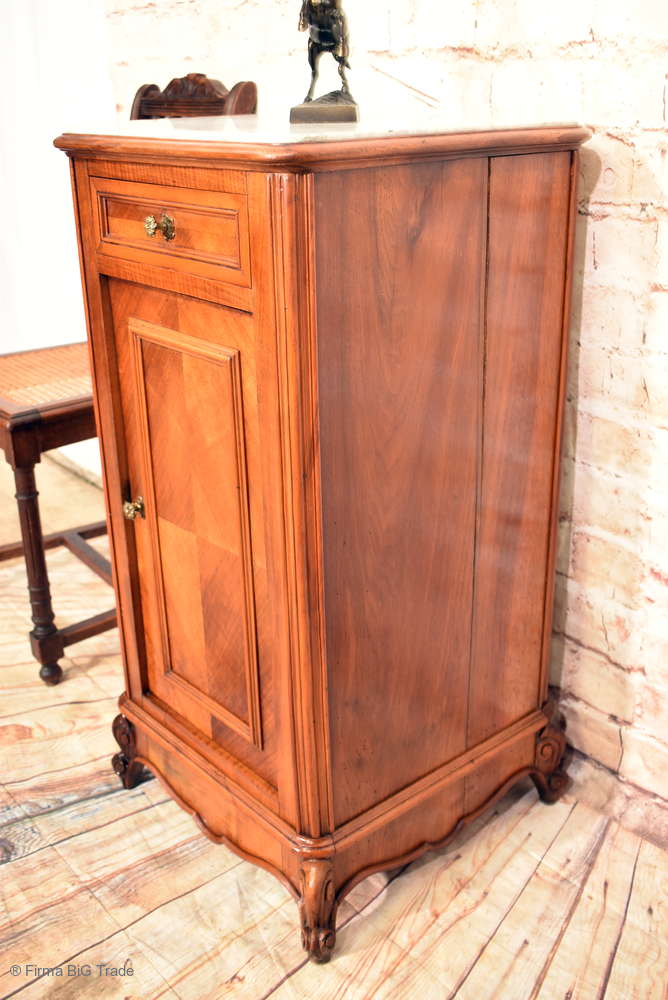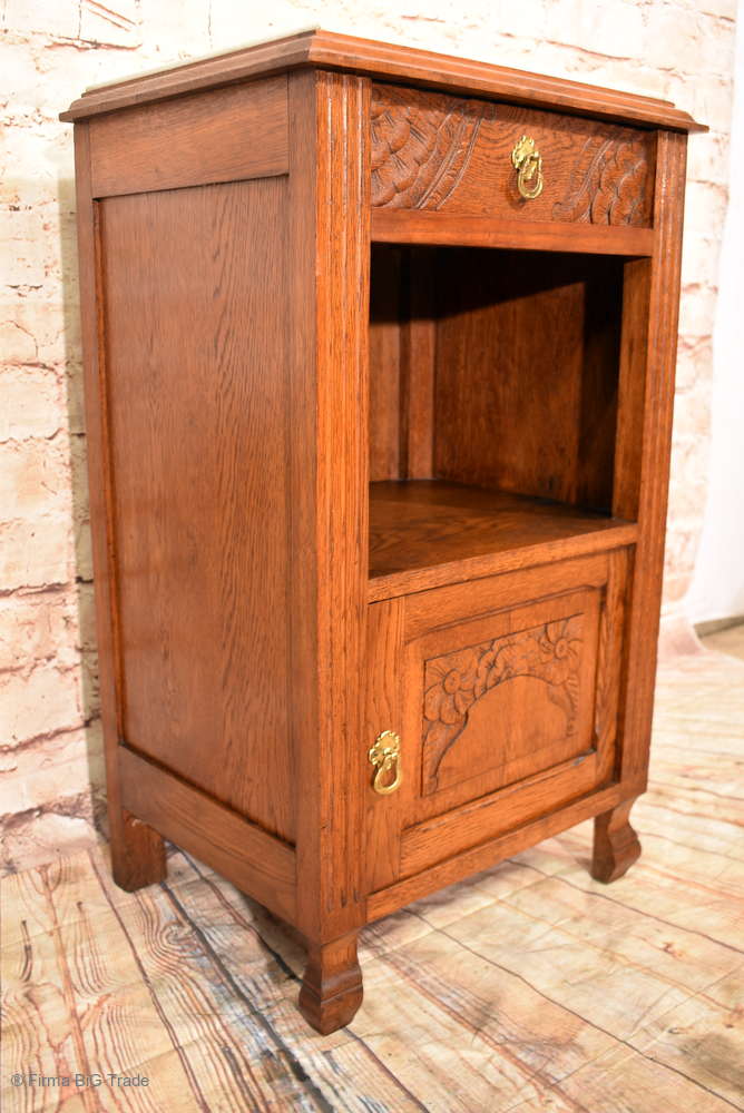 Zauberhafter Antiker Jugendstil Nachttisch Nachtschrank Beistellschrank Marmorplatte Schnitzereien / Nr.239