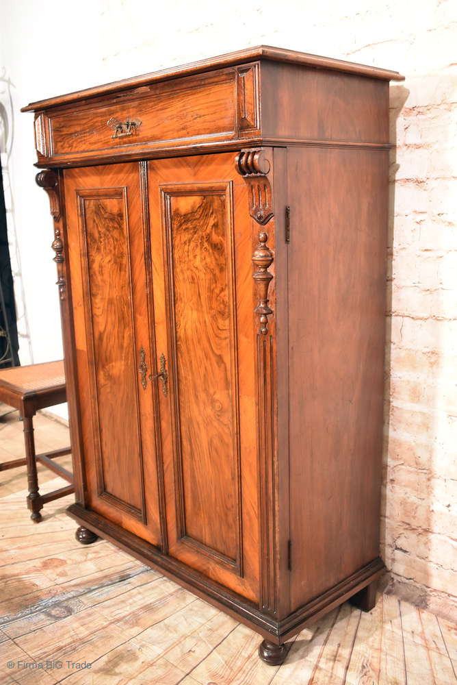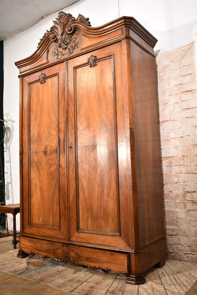 Prächtiger antiker Louis Philippe Schrank Kleiderschrank Dielenschrank Zerlegbar Wurzelholz Große Schublade