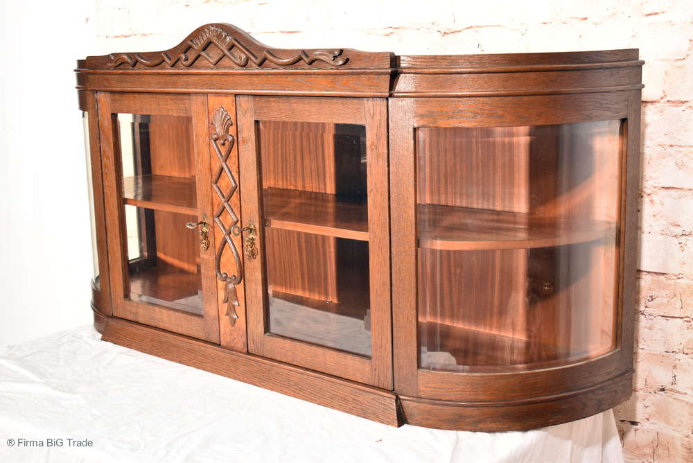 Zauberhafter antiker Jugendstil Vitrinen-Aufsatz Rundbogen Vitrine Glasvitrine Flügeltüren Facettenglas