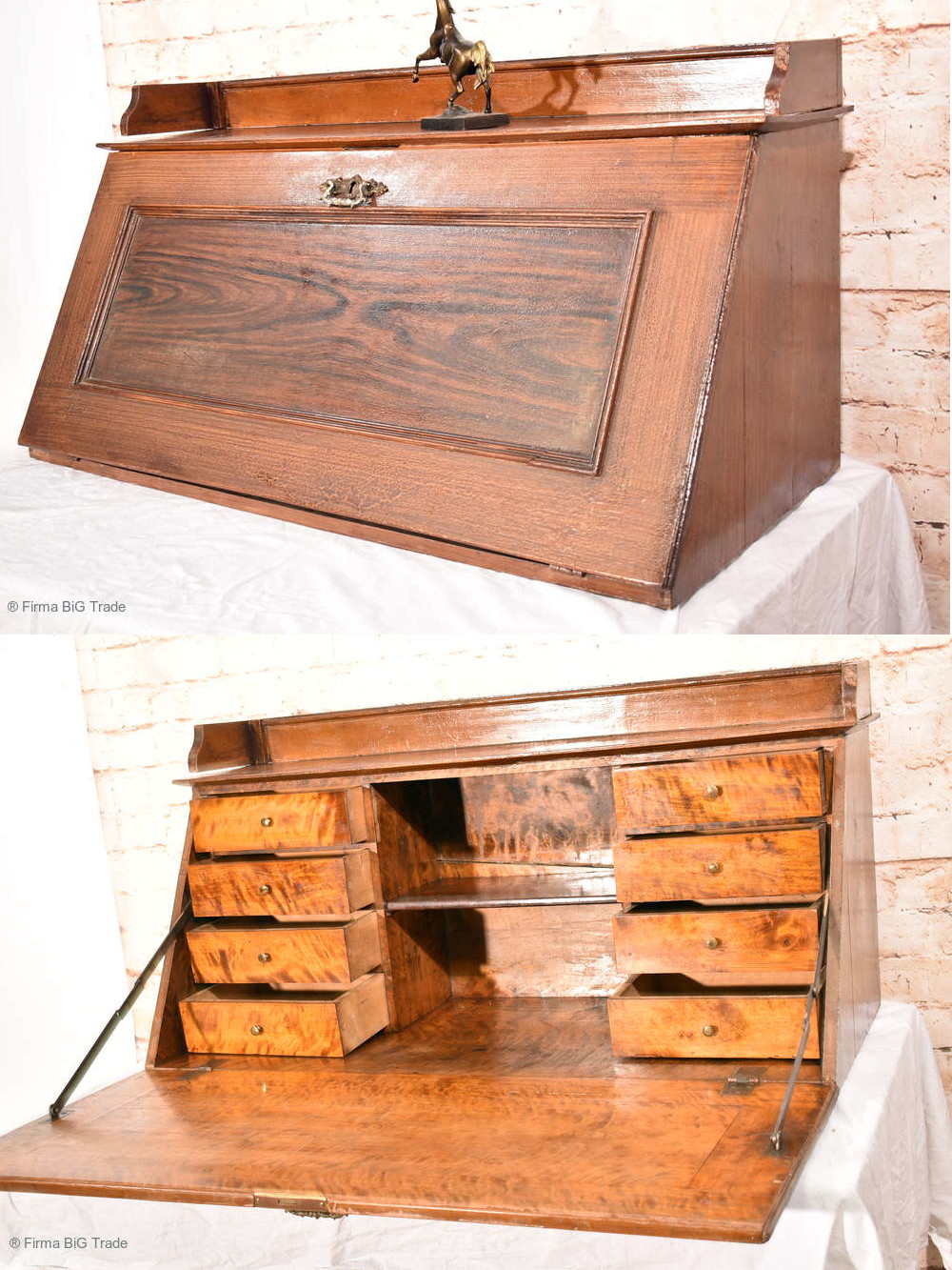 Antiker Biedermeier Sekretär Aufsatz Klappsekretär Herrenzimmersekretär 8 Schubladen Massiv Holz