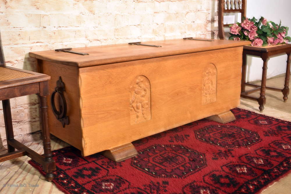 Prächtige antike Truhe Truhenbank Flachdeckeltruhe Flurtruhe Wäschetruhe Eiche Massiv Hell gebeizt