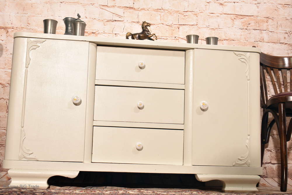 Retro! 50er Jahre Küchenschrank / Beistellschrank / Sideboard Fernsehschrank Alt-Weiß 3 Schubladen