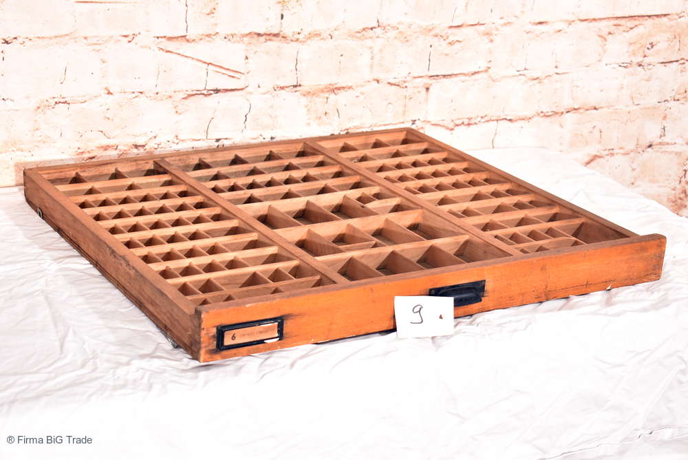 Großer Antiker Setzkasten / Druckerei Schublade / Regal f. Zierobjekte / Griff / Wandregal Viele Fächer / Nr. 9