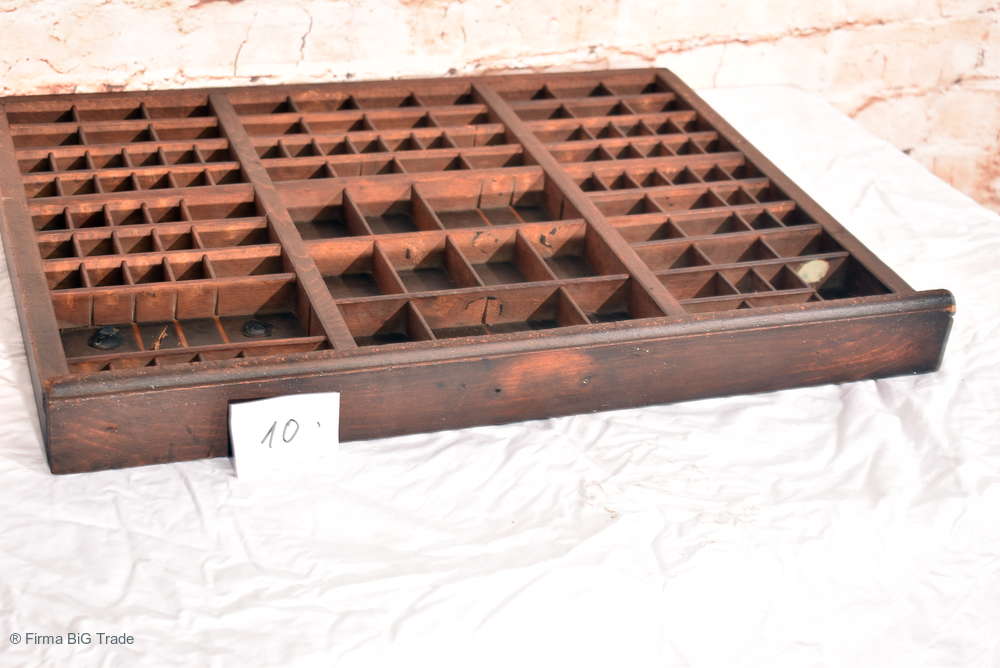 Großer Antiker Setzkasten / Druckerei Schublade / Regal f. Zierobjekte / Wandregal Viele Fächer / Nr. 10