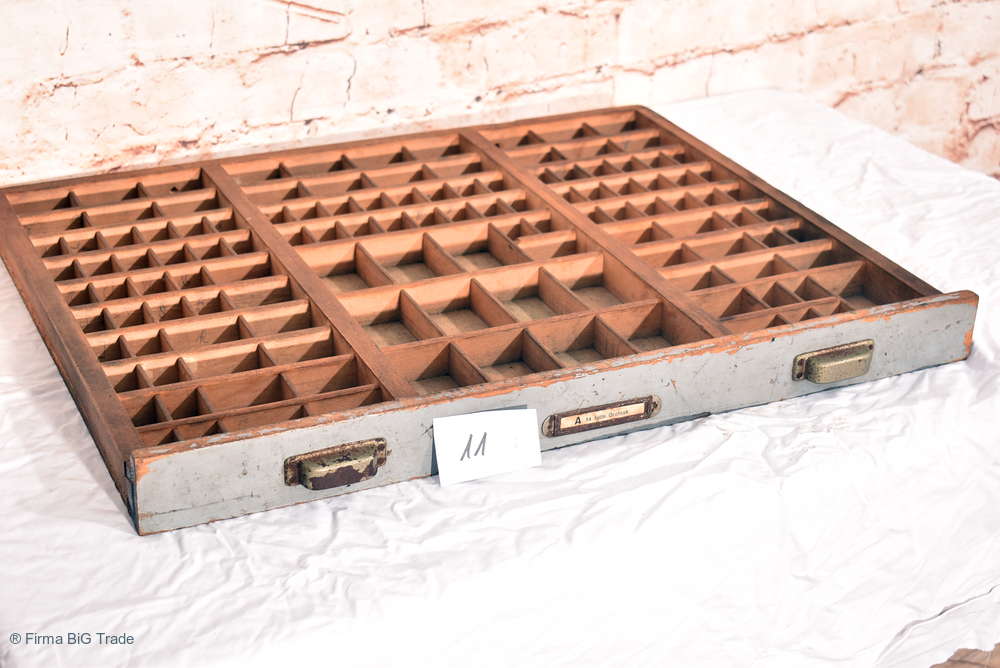 Großer Antiker Setzkasten / Druckerei Schublade / Regal f. Zierobjekte / Griffe / Wandregal Viele Fächer / Nr. 11