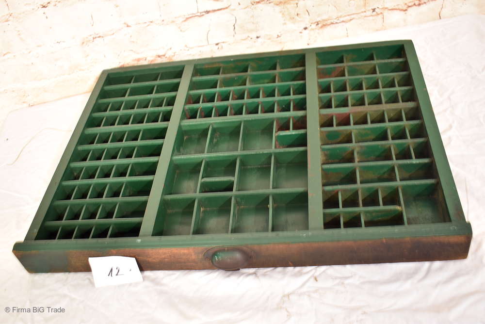 Großer Antiker Setzkasten / Druckerei Schublade / Regal f. Zierobjekte / Griff / Wandregal Viele Fächer / Nr. 12