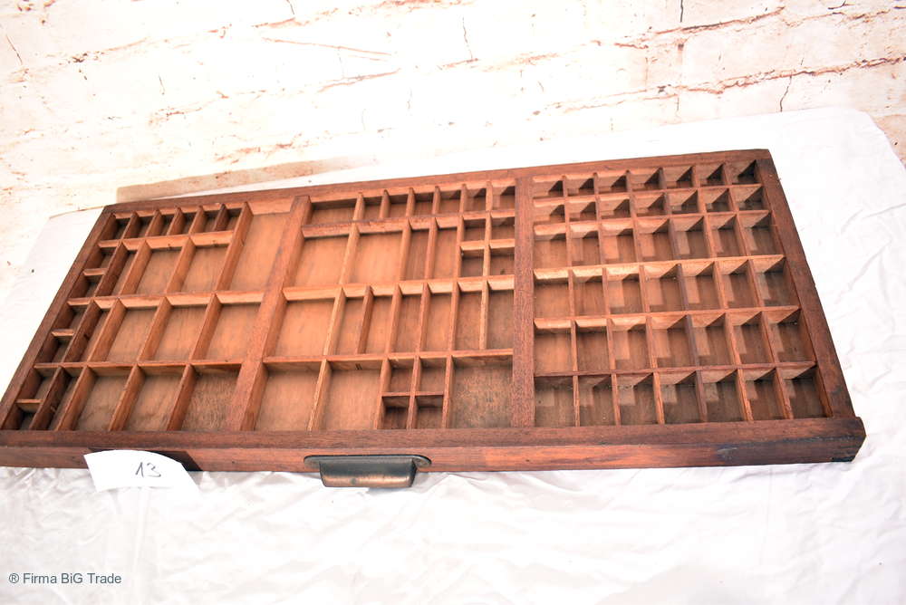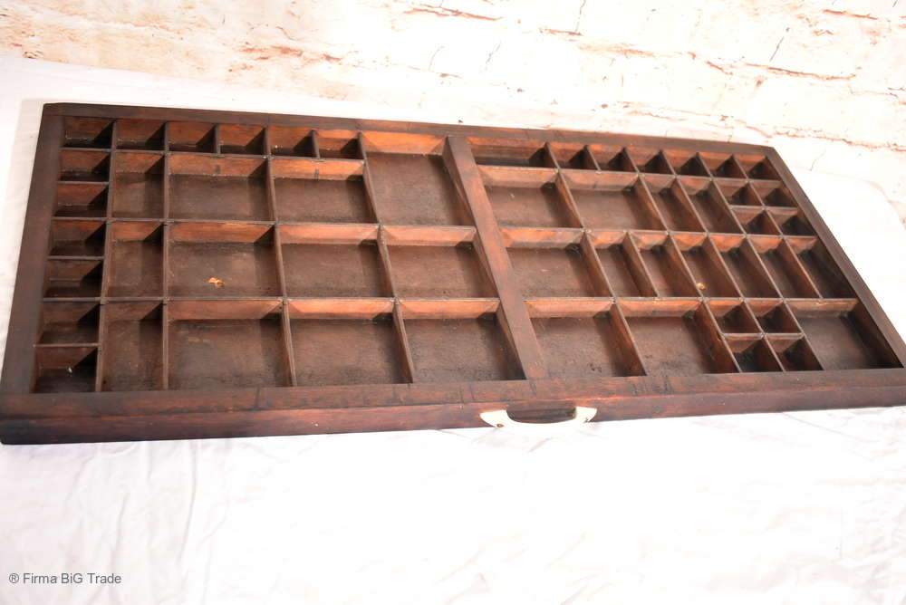 Großer Antiker Setzkasten / Druckerei Schublade / Regal f. Zierobjekte / Griff / Wandregal Viele Fächer / Nr. 13