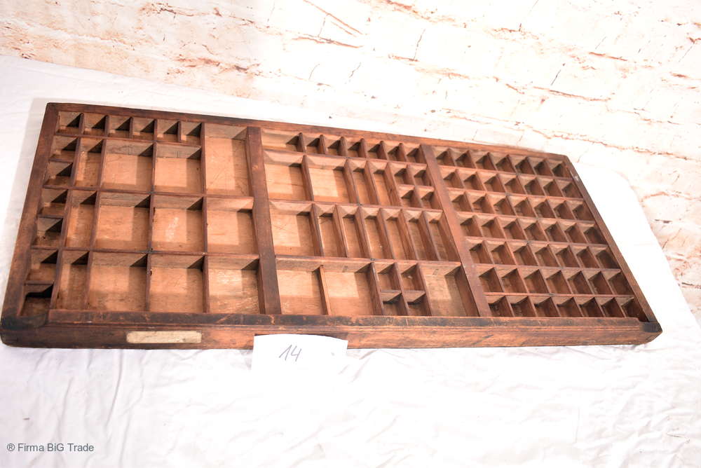 Großer Antiker Setzkasten / Druckerei Schublade / Regal f. Zierobjekte / Wandregal Viele Fächer / Nr. 14