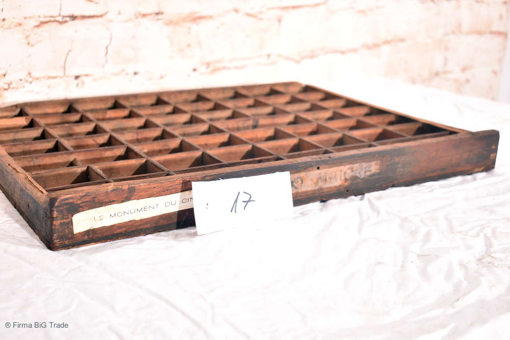Ausgefallener Antiker Setzkasten / Druckerei Schublade / Regal f. Zierobjekte / Wandregal Viele Fächer / Nr. 17