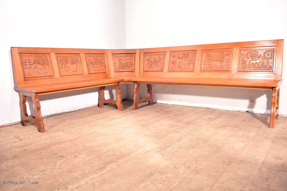 Wunderschöne Landhaus Stil Eckbank / Bauernküche / Bank / Jagdzimmer / Küchenbank / Jagdmotive Schnitzereien