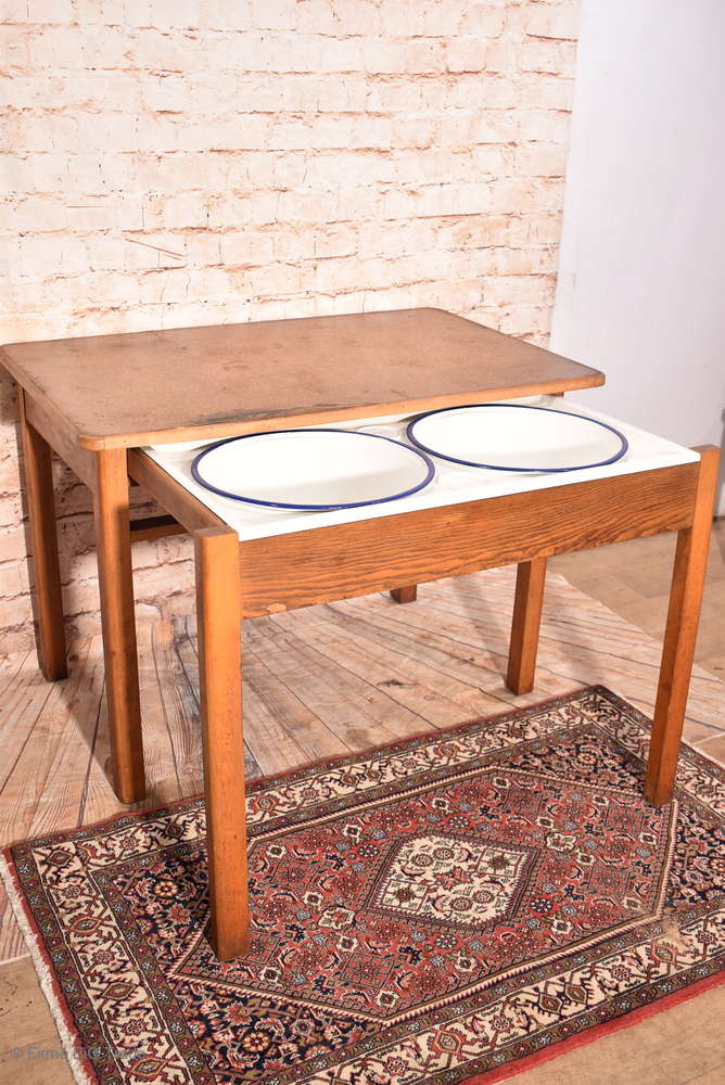 SELTEN! Antiker Küchentisch Waschtisch 2 Waschbecken Große Emailschüsseln Umwandelbar Ausziehbar