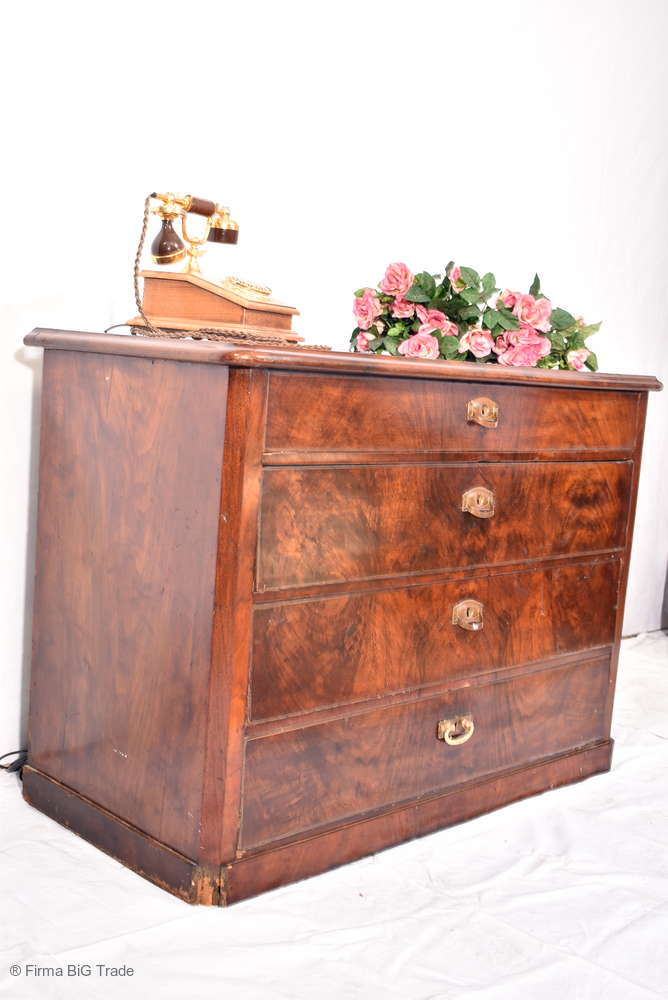 Schöne antike Biedermeier Kommode Schubladenkommode 4 Schubladen Massiv Wurzelholz zum Aufarbeiten