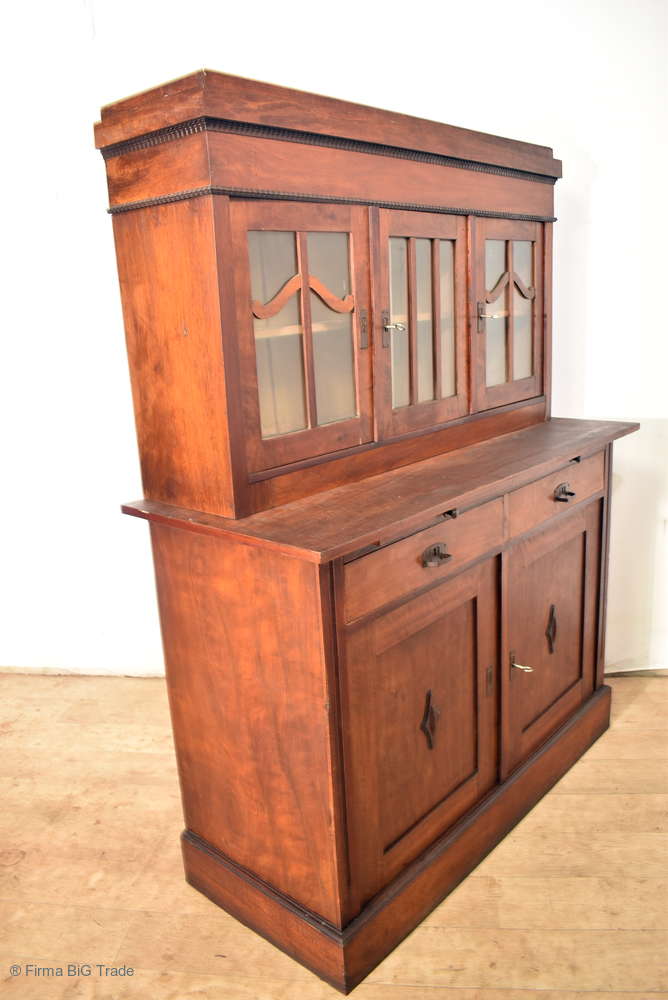 Schöner 2tleiger antiker Jugendstil Küchenschrank / Kredenz / Wohnzimmerschrank 2 Schubladen Aufsatzschrank