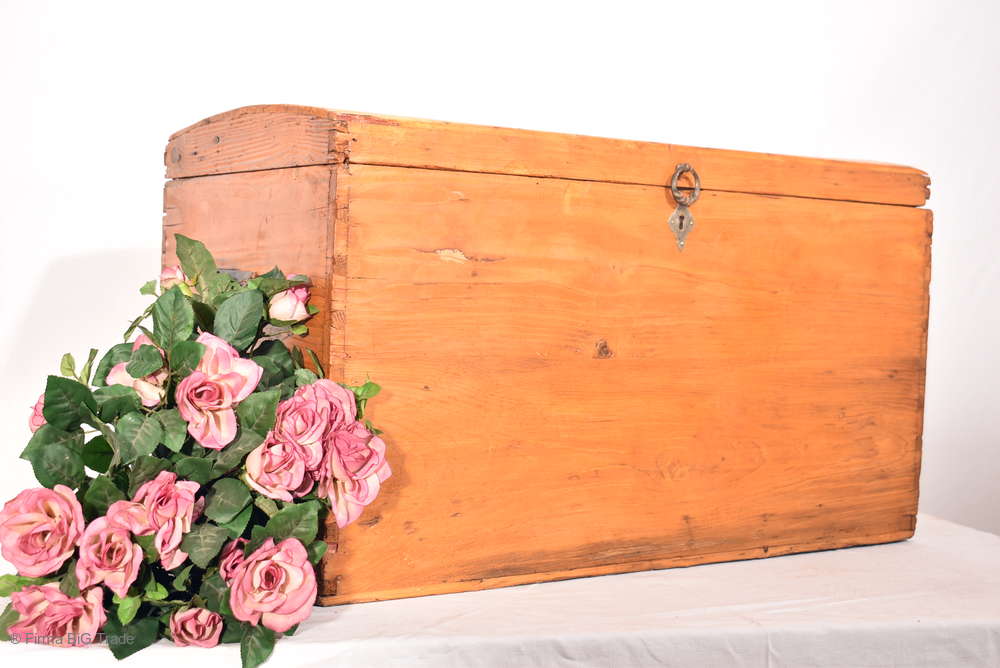 Antike Biedermeier Runddeckeltruhe Landhaus Truhe Holztruhe / Wäschetruhe Weichholz massiv / Nr. 21