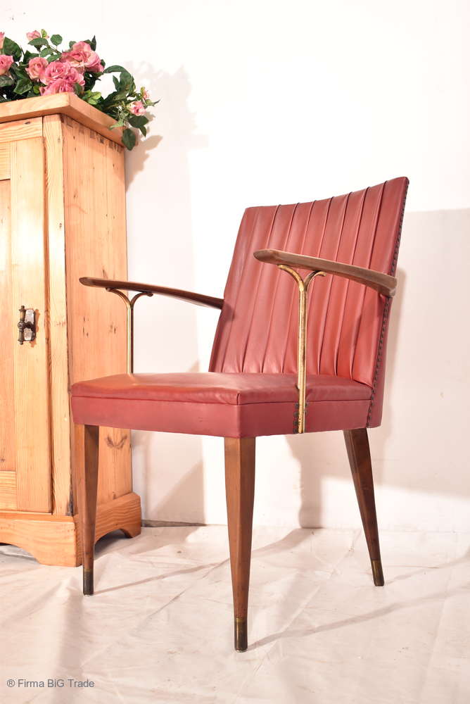 Retro Schreibtischstuhl Chef-Stuhl Armlehnstuhl Bürostuhl 50er- 60er Jahre Weinrot/ Mid Centruy desk chair