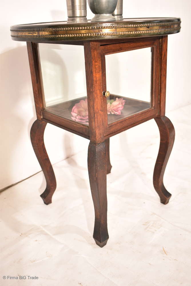SELTEN! Antiker Jugendstil Rauchtisch mit Zigarrenvitrine / Glasvitrinen / Eiche Massiv Glastür Messingplatte