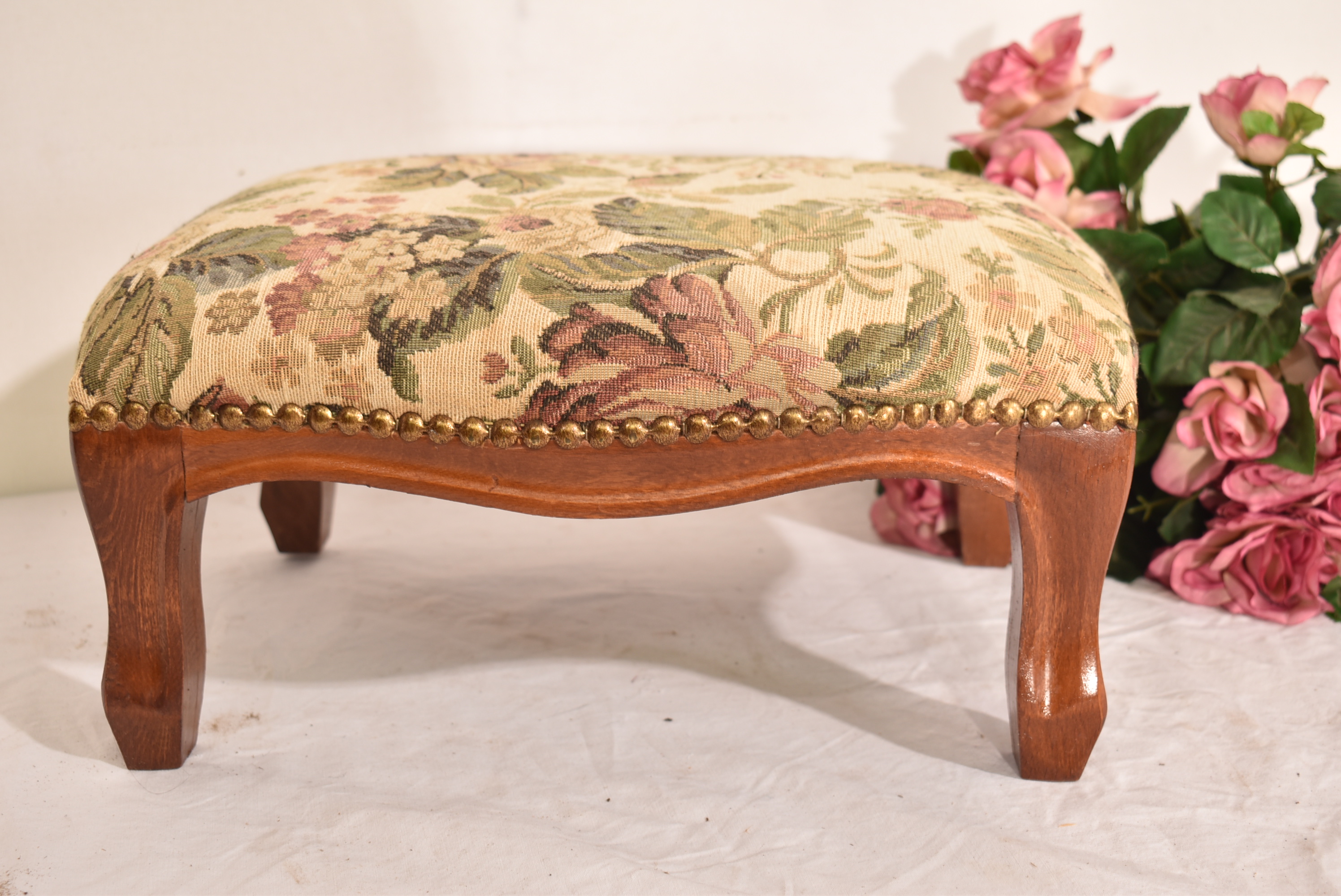 Bezaubernder Chippendale Fußhocker / Fußbank / Gobelinstoff / Schemel / Fußstütze / Nr. 1